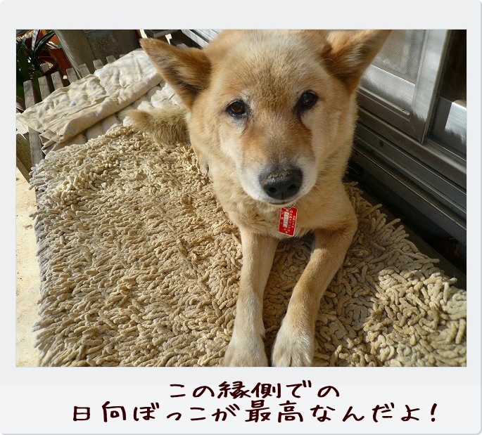 縁側に座布団にじ~さん!きゃはは~。いい感じ?