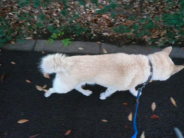 でぇさぁ。お散歩してるときは、しっぽが、くるりんって