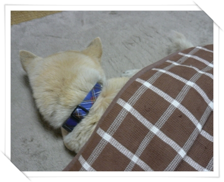 で?ボブさんはといいますと、犬生初体験のこたつで寝んねです。