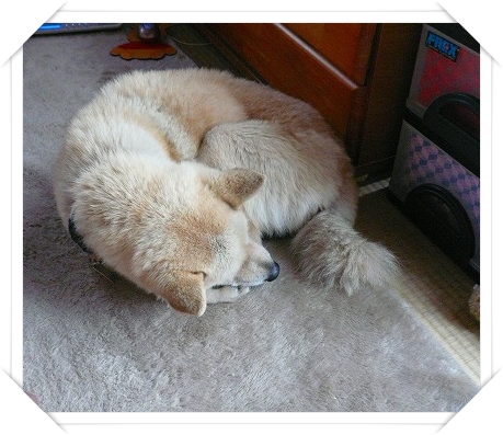 掃除機かけても、何しても起きずに、熟睡で、結局お散歩に