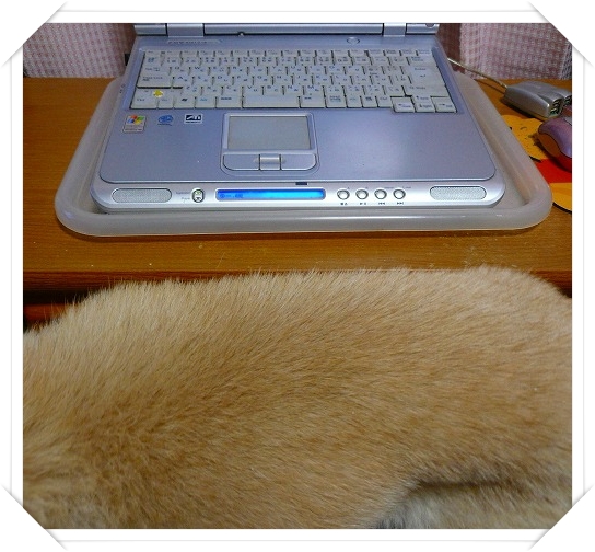 旦那さまのPCの下?です。