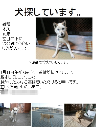 ボブさん。ずっと私を探し回ってくれてたらしいです。