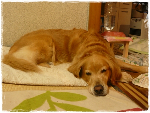 一日でございまして、1時間弱のお散歩後のし~ちゃんは・・・。