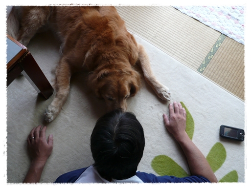 ちゃんを紹介してくれたんですけど、今日は特別に大型犬のゴールデンちゃんがお泊りしてくれてます。