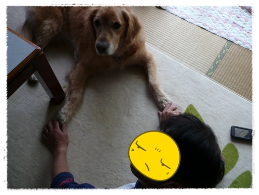 今日は特別に大型犬のゴールデンちゃんがお泊りしてくれてます。