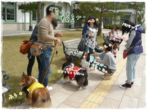周りはみんな10倍近い大きさのワンコだらけで~ホントは怖かったかな~?