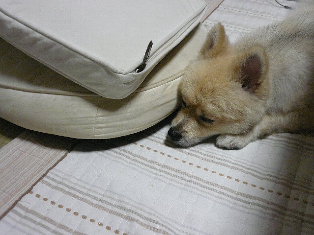 お散歩から帰ってきてぐったりぐっすり睡眠をしていた