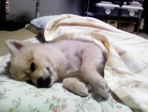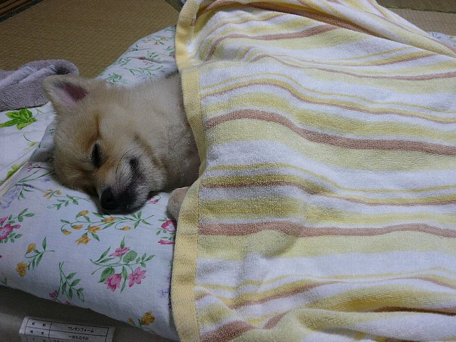 おふとんかけてもらったら、なんとなく安心したのかな?
