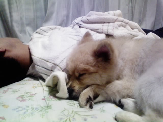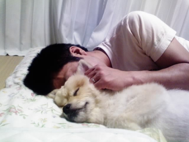数分後、あきらめた旦那さまの方を枕に寝始めたシーマたん。
