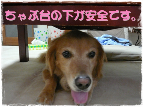 って・・・。高ちゃんの場合テーブルの下は避難場所じゃ