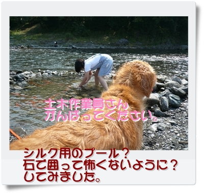 シルクたんに、川に慣れていただこうと~私~がんばりましたよ! 1時間ほどちゃぷちゃぷと川になれていただいた後