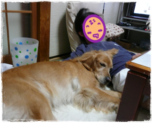 まこっちゃんに寄りかかって寝て、