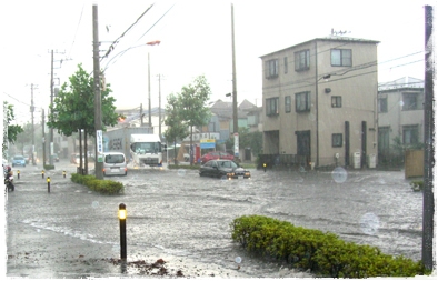 ↓会社の前の道路、海になりました。