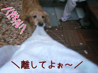 洗濯物、ひっぱられてはニコニコしてるnanachaさんが