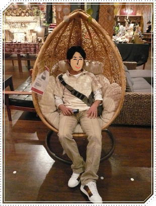 支柱?に吊るされている籐の椅子?なんですけどね。