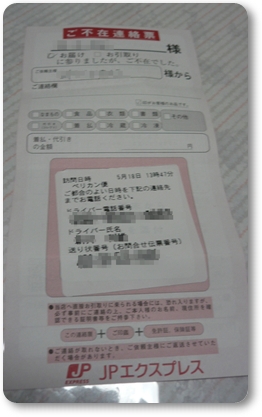 私はこの不在連絡票を見て、妄想で、ニヤニヤ笑いが