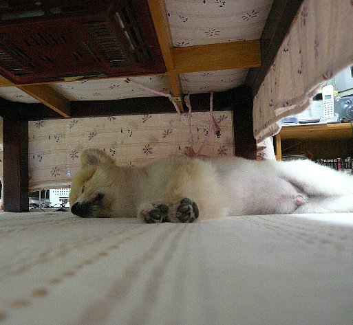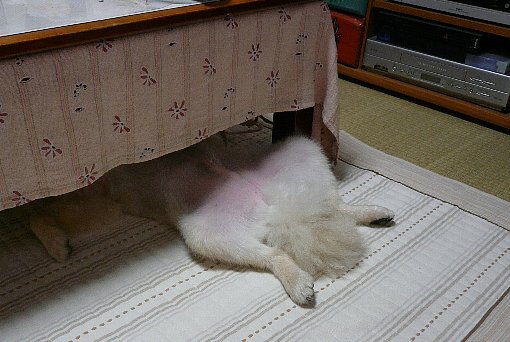 昨夜、いつもの通り?テーブルの下に、もぐって寝ていたシーマたん