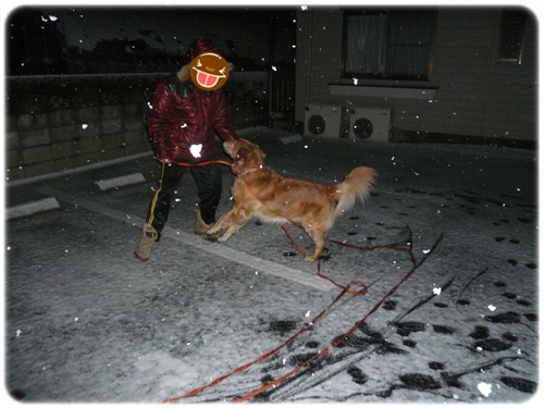 で?昨夜うっすら雪化粧になってきてから、し~ちゃんとお散歩?に行ってきました。