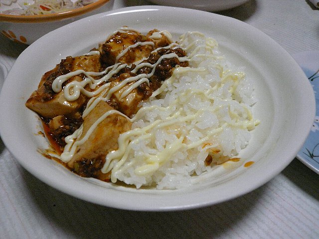 麻婆豆腐を辛目に作って、ご飯にかけて、それに