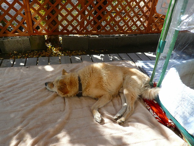 日向ぼっこ日和でした。会社へ行く前に~遊ぼうと思ったら~すでに寝て