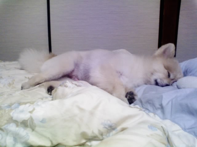 とっても気持ちよさそうに、旦那様のお布団で寝ていました。