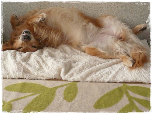 いつもの場所でひっくりかえって寝ていたし~ちゃん・・・。