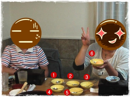さて!問題です!空いたお皿が5つ、手に持ってるのが1つ~