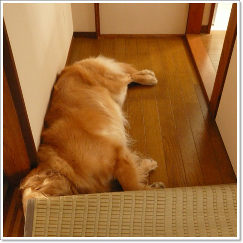 風の通り道なのと、板の間だからここが一番涼しい場所なんだと・・・。