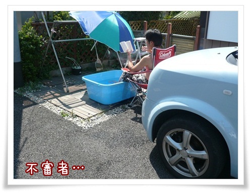 日焼けが目的らしく・・・。パラソルは雰囲気!雰囲気だよ!って