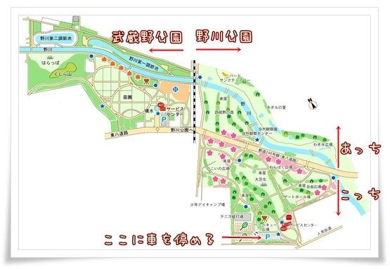 でね。この野川公園ね、あっちとこっち?にわかれてる公園なんですけど、