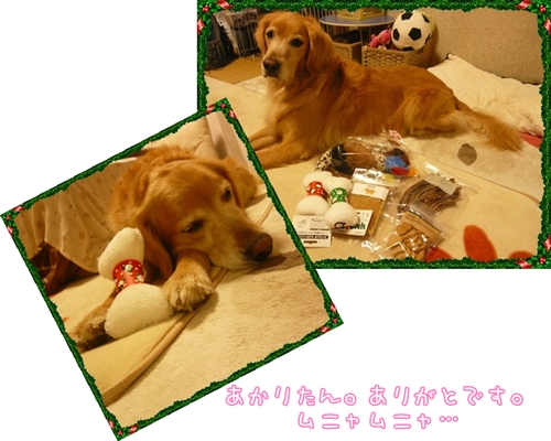 そうそう、シルクちゃんちから頂いたクリスマスディナー、本日あかりさんしっかり頂きました~!ごちそうさまでした*^^*、すっごくウマウマだったみたいですよ~。