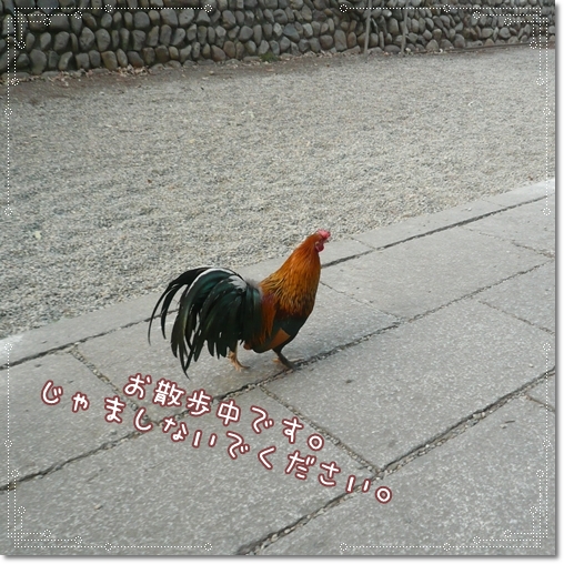 そうそう、あのチャボさんには、あかりもいまだ突進していっちゃって、大変なんですよ・・・でもチャボさんたちも危害が無いってわかってるだけに堂々としたもんです。