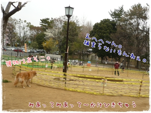 柵を飛び越えてママのとこへショートカットしてました。
