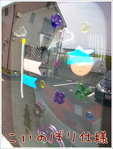 車の左後ろの開かない。意味不明な。窓はこいのぼり仕様に変えてみた。