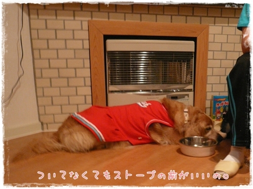 で?ストーブの前で寝てたはずのし~ちゃん。