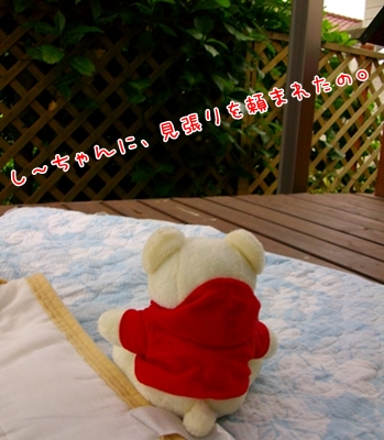 本日撮った1枚。お布団で、ふと目を開けたら、縁台で見はりをしてくれてた。