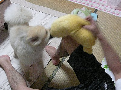 ぬいぐるみ取り合いごっこをして遊んでました♪