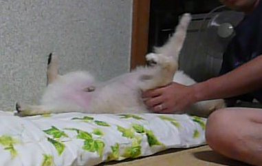 あの、後ろ足のびの~びな寝方&座り方は、お腹が冷えて気持ちいいのでしょうか?