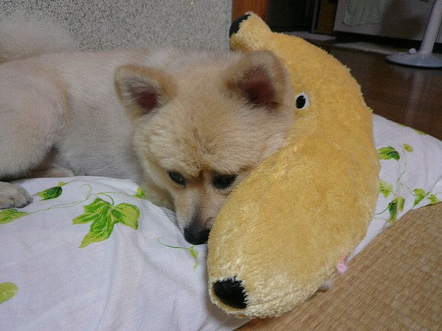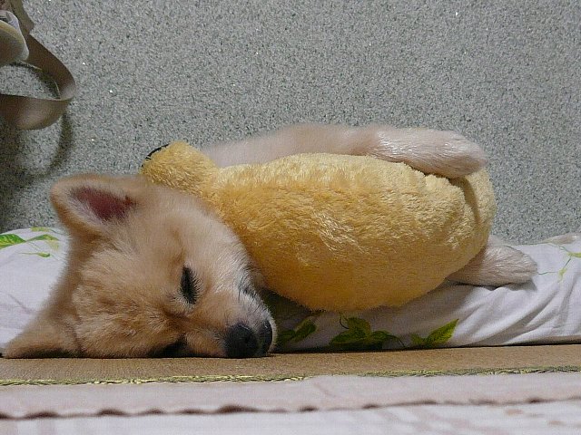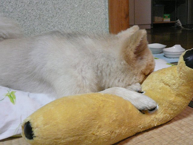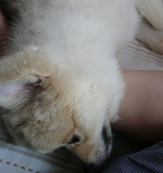 の前に座っている私の足を枕にお寝んね?してくれてます。あと10日間!いっぱい遊ぼうね