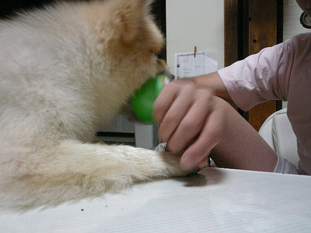 ご飯のあと、大はしゃぎして遊んでて、夜のお散歩の時も